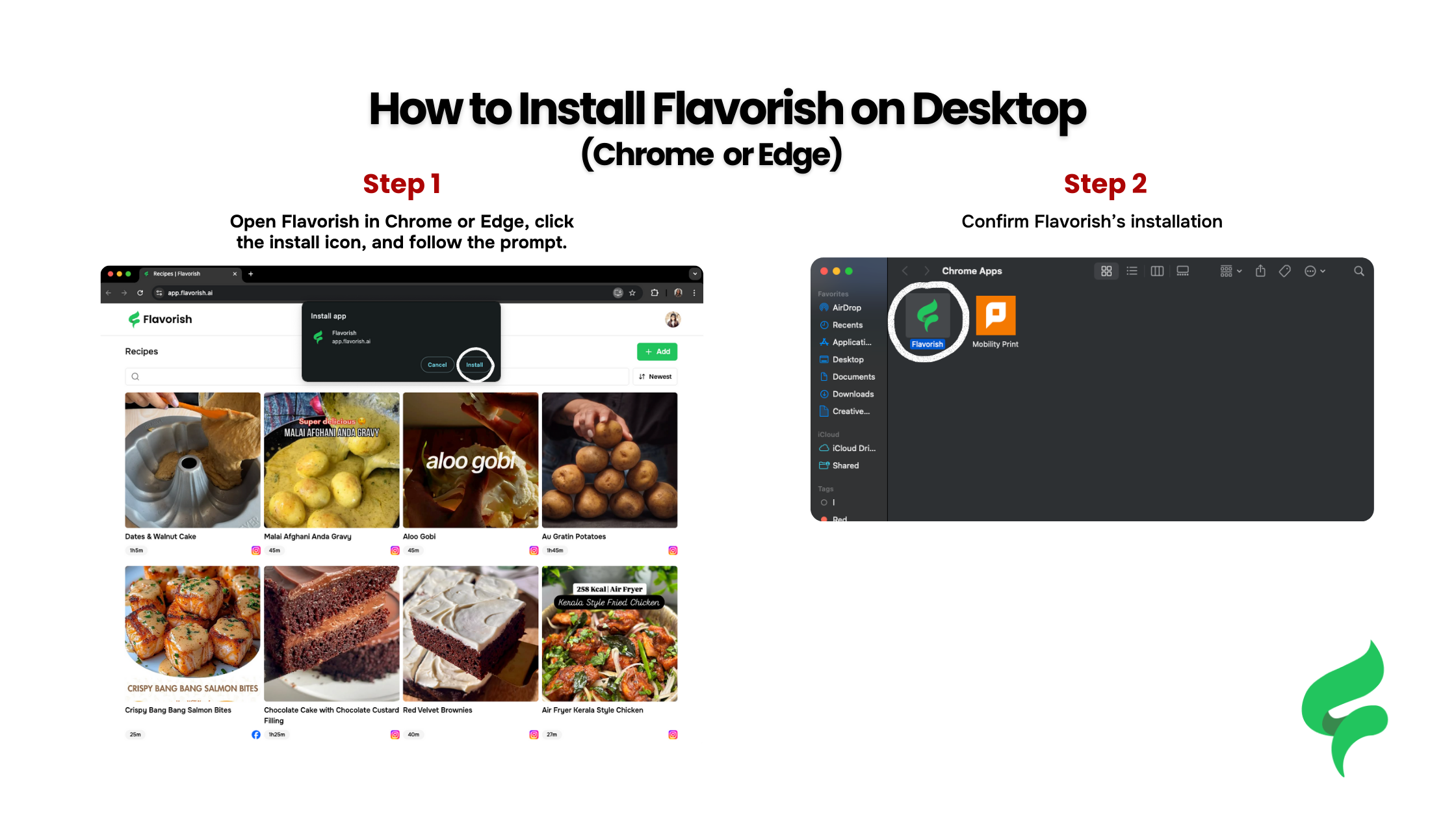 - Confirm the installation. Once installed, Flavorish will appear in your Start menu (Windows), Dock (macOS), or App Launcher (Linux/Chromebook).