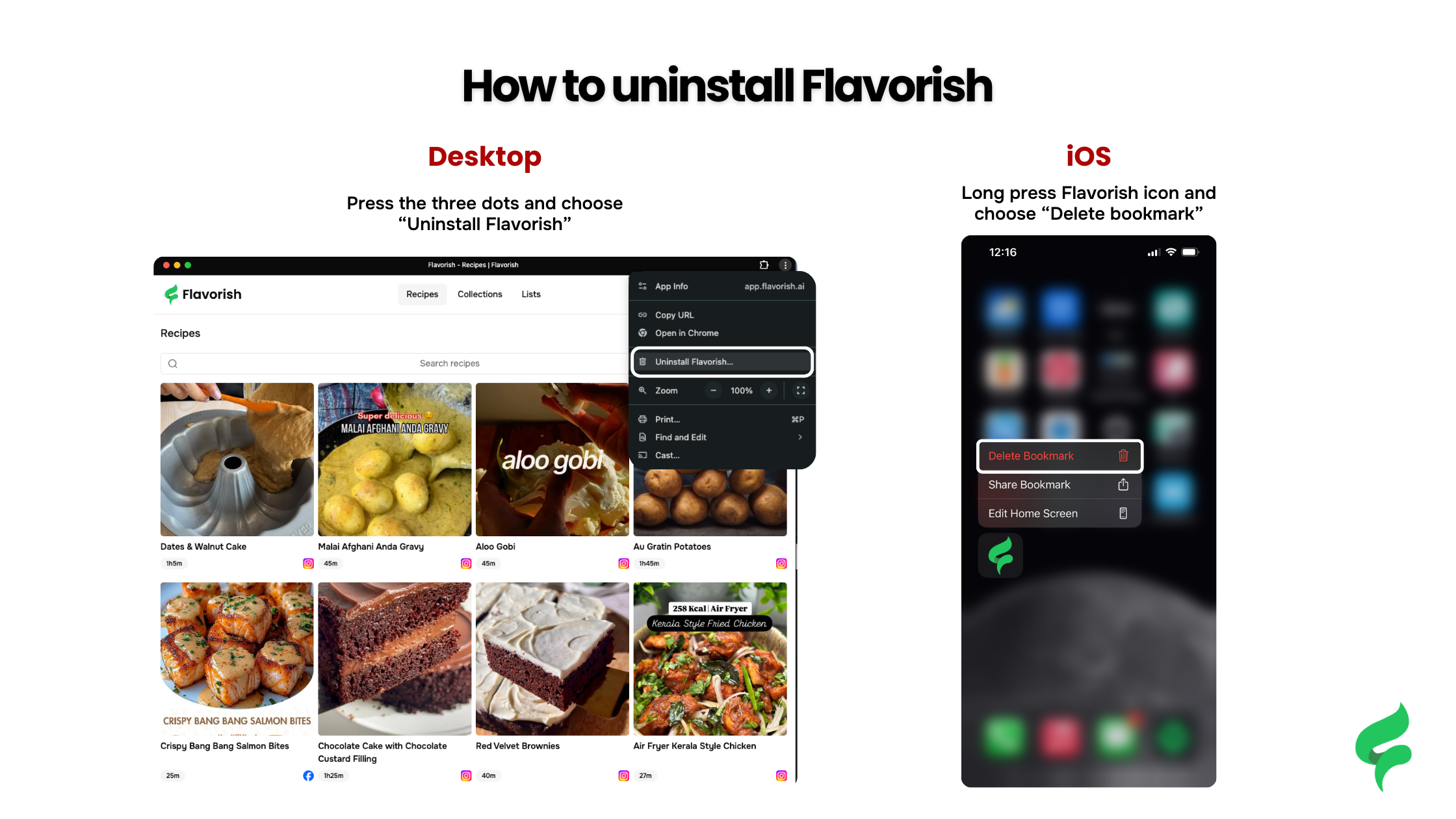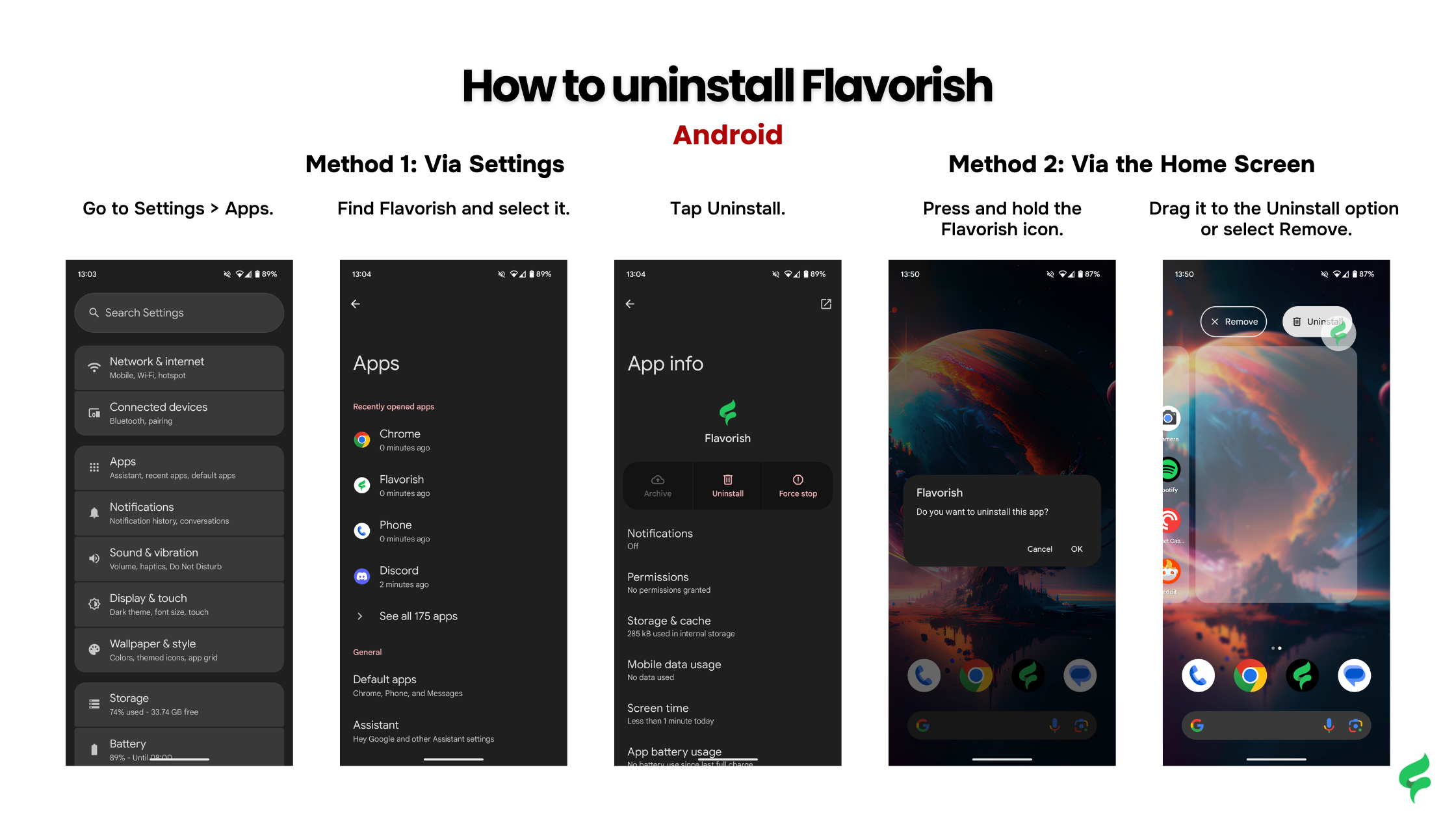 Uninstalling Flavorish is just as easy as installing it. On most devices: