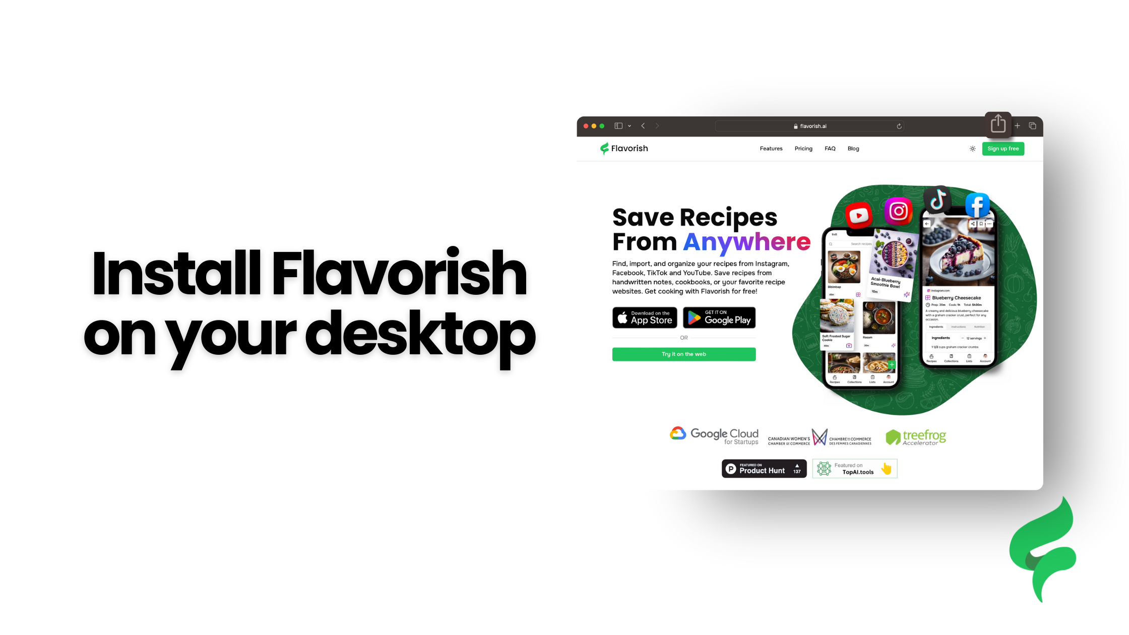 Installing the Flavorish Progressive Web App (PWA) is an easy and seamless process that will bring all the fantastic features of Flavorish directly to your device, whether you're using a desktop, iOS, or Android. In this guide, we'll walk you through the steps for installing the PWA on various devices, and what to expect once it's installed.