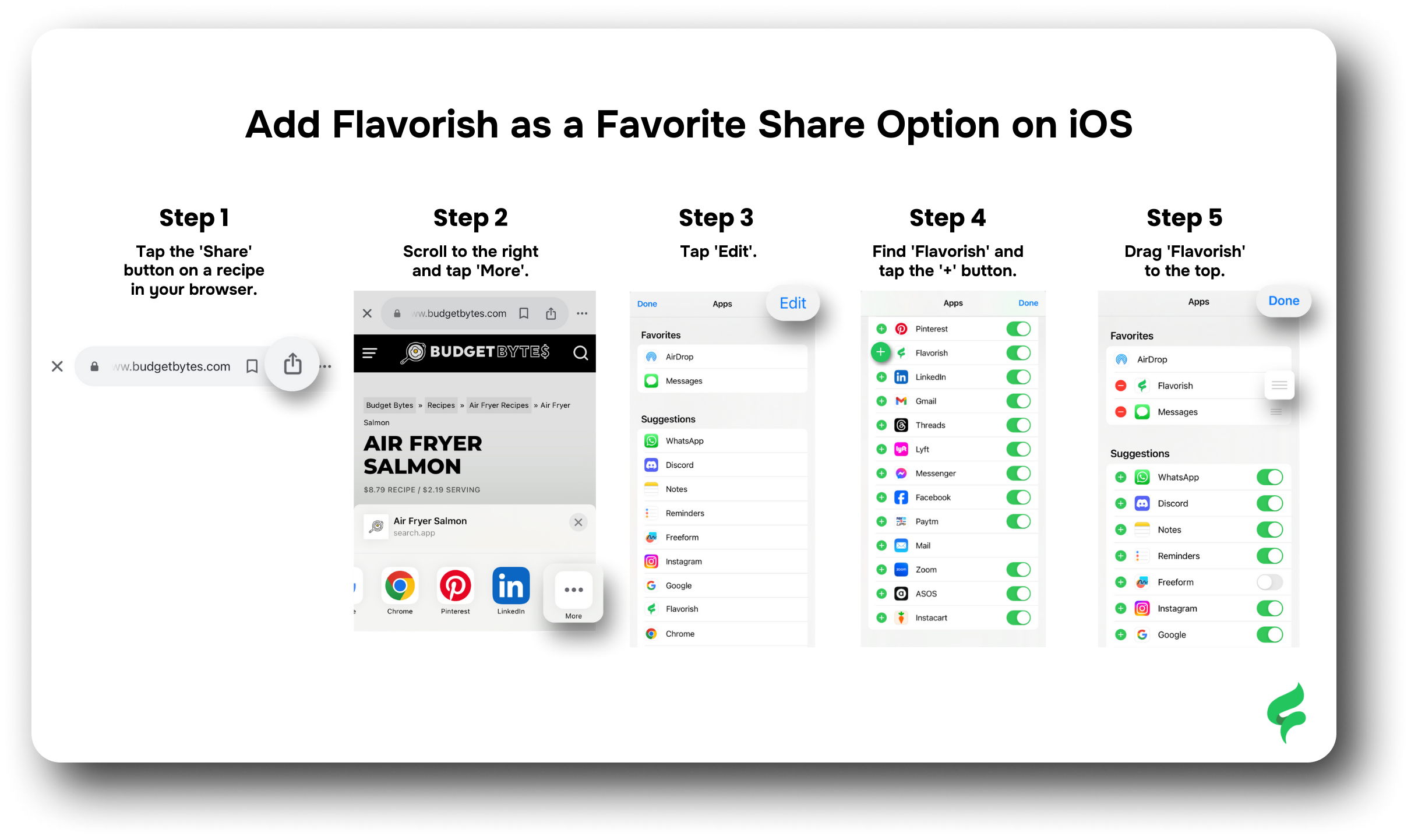 Make saving recipes to Flavorish quicker by adding it as a favorite in your share options.