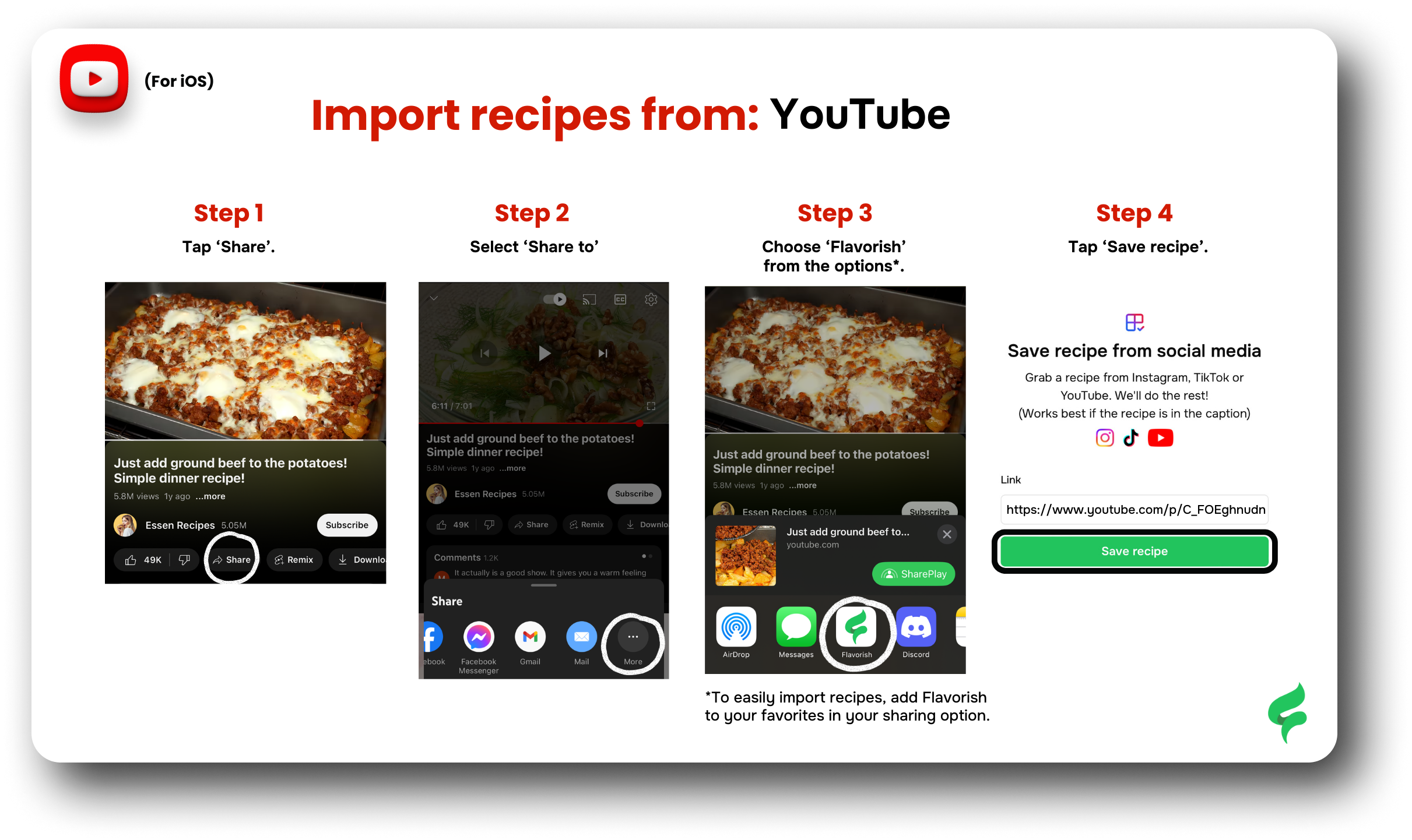 - Select Flavorish: Choose “Flavorish” in the sharing options and tap "Save recipe".