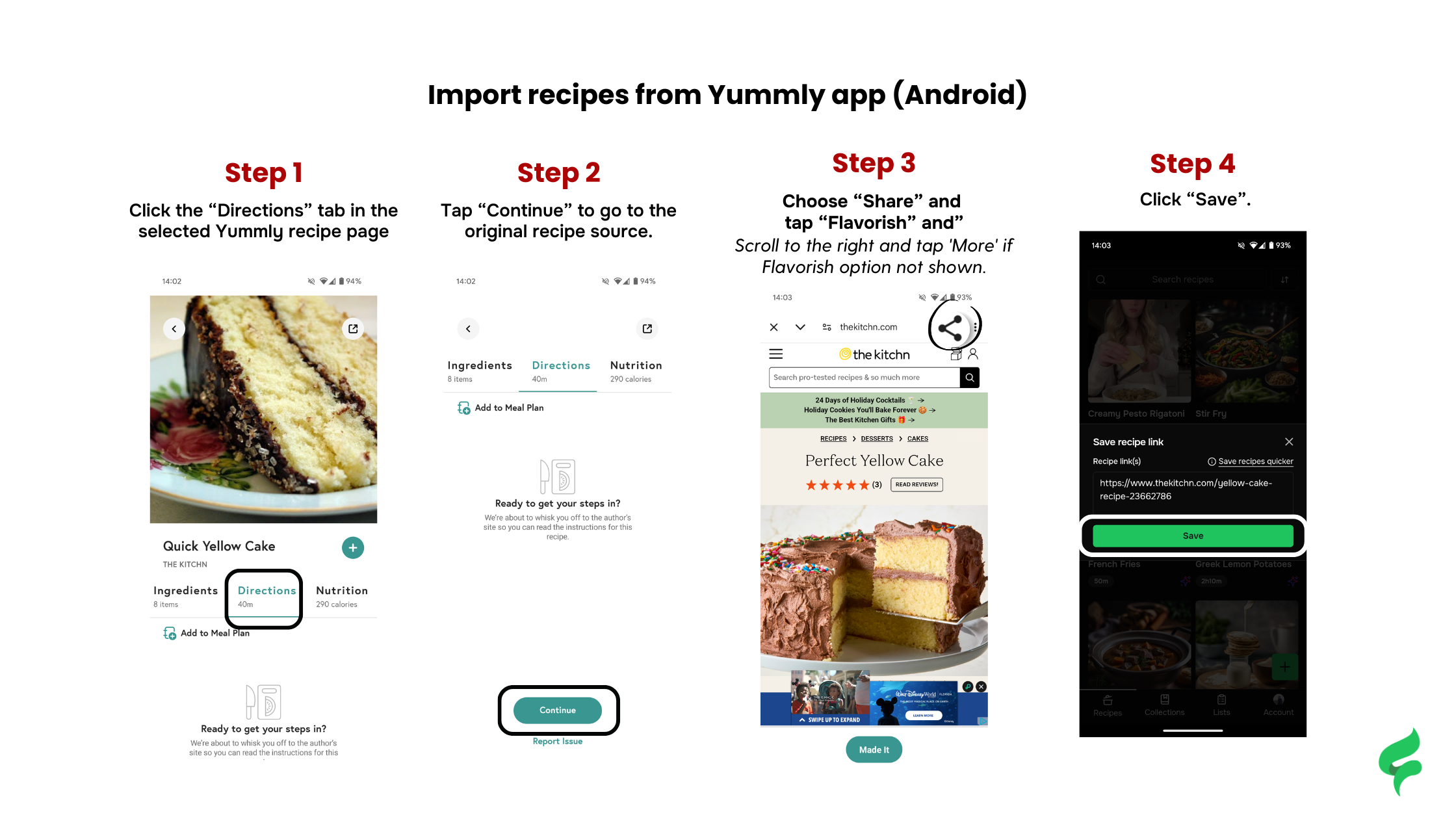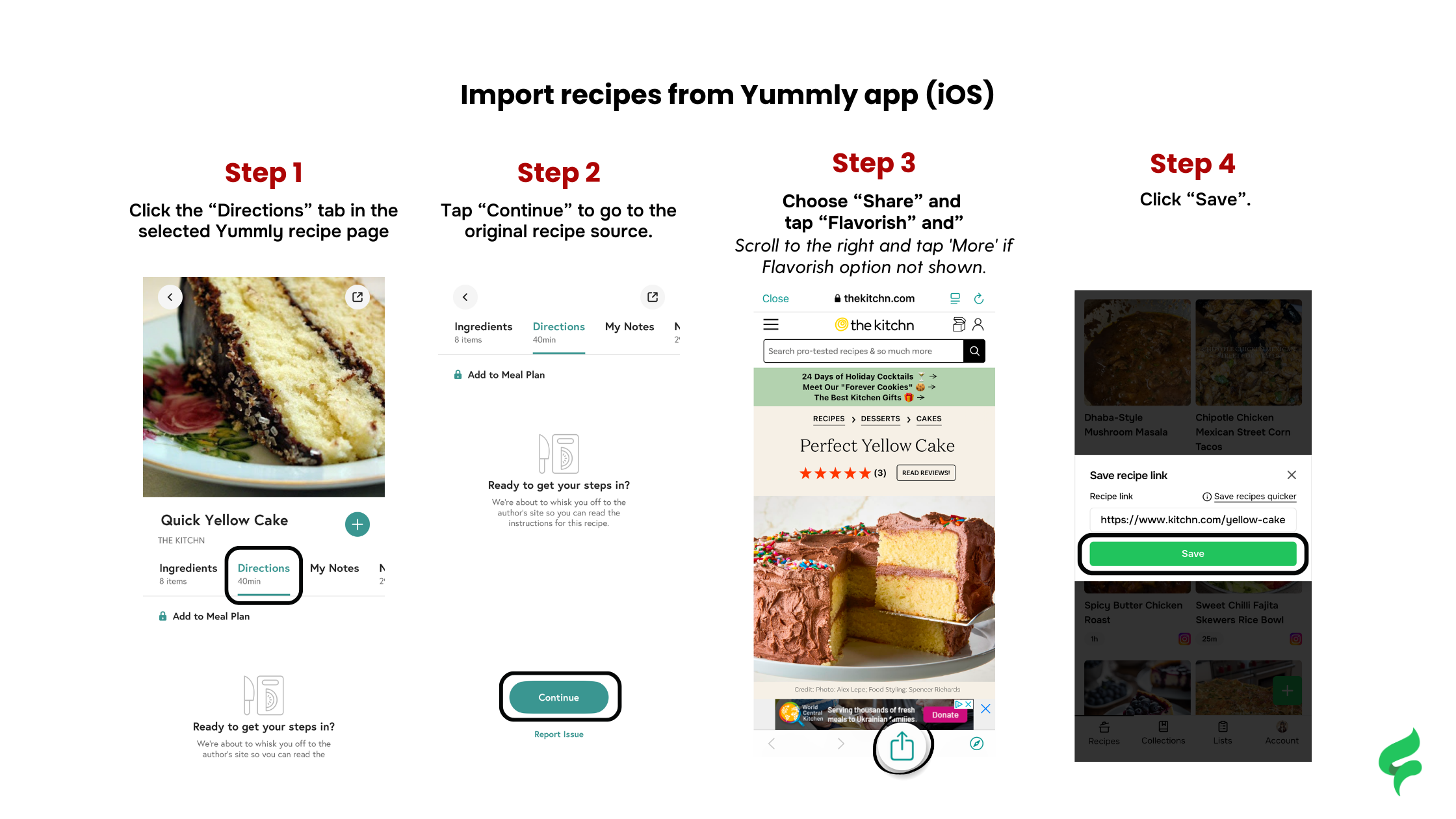 - Click “Share” and select Flavorish, or simply copy the link and paste it into Flavorish’s “Save recipe link” feature.